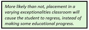 (5) the VE placement fails to provide the student with the opportunity to achieve the goal of being mainstreamed by kindergarten or first grade.