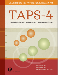 The TAPS-4 provides information about language processing and comprehension skills across three intersecting areas: phonological processing, auditory memory and listening comprehension.